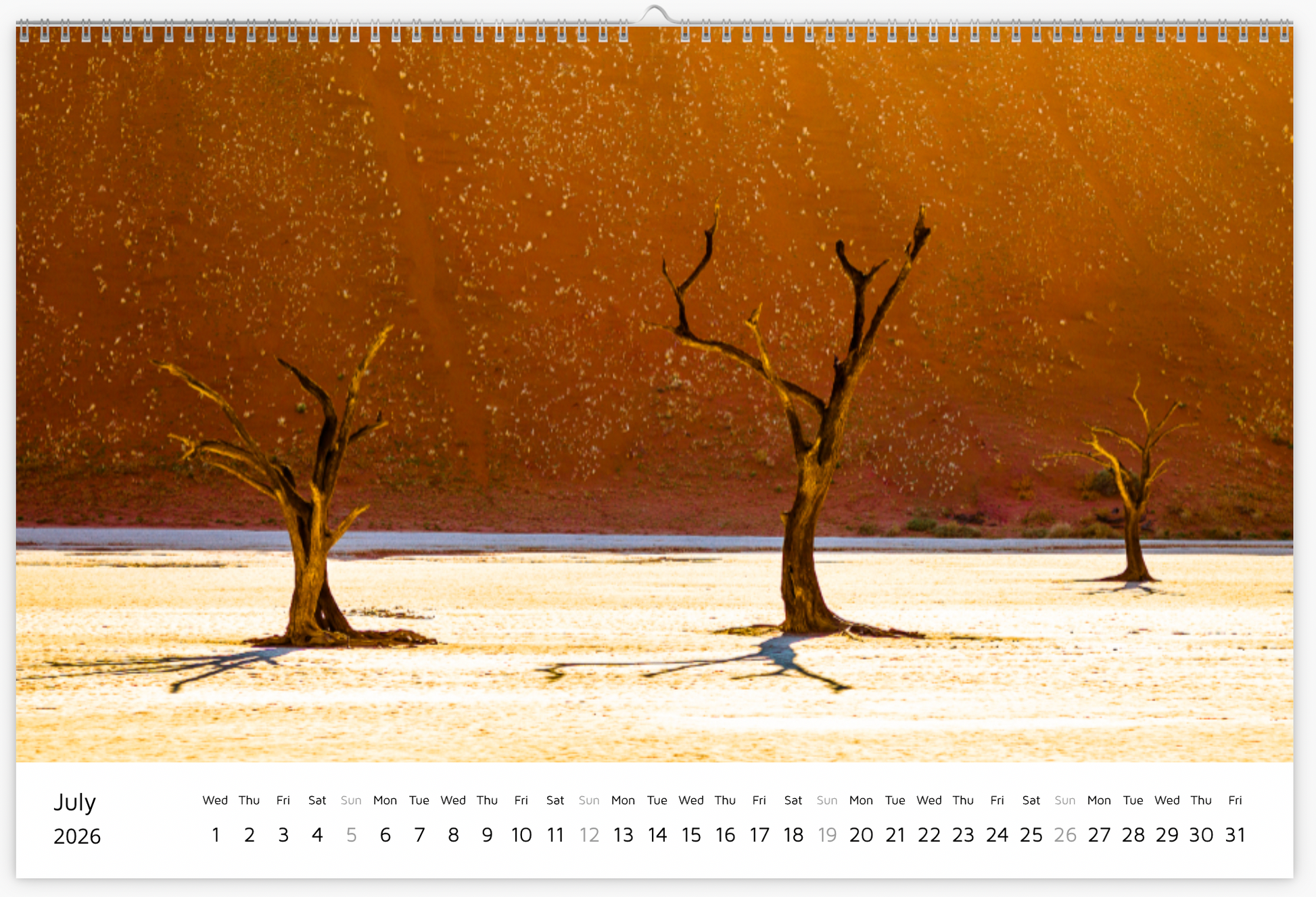 High-Quality Printing: The calendar is printed on the Fuji Supreme glossy (232 g/m2) This photo paper has the high gloss surface known from photo prints. The advantages are brilliant colors and strong contrasts. Exposed by laser and chemically developed.